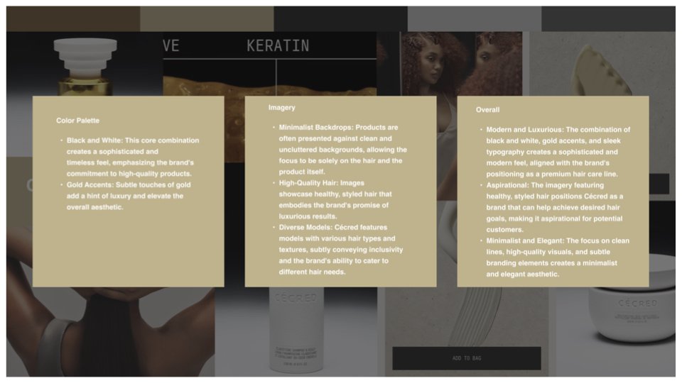 Aspirational: The imagery featuring healthy, styled hair positions Cécred as a brand that can help achieve desired hair goals, making it aspirational for potential customers.
