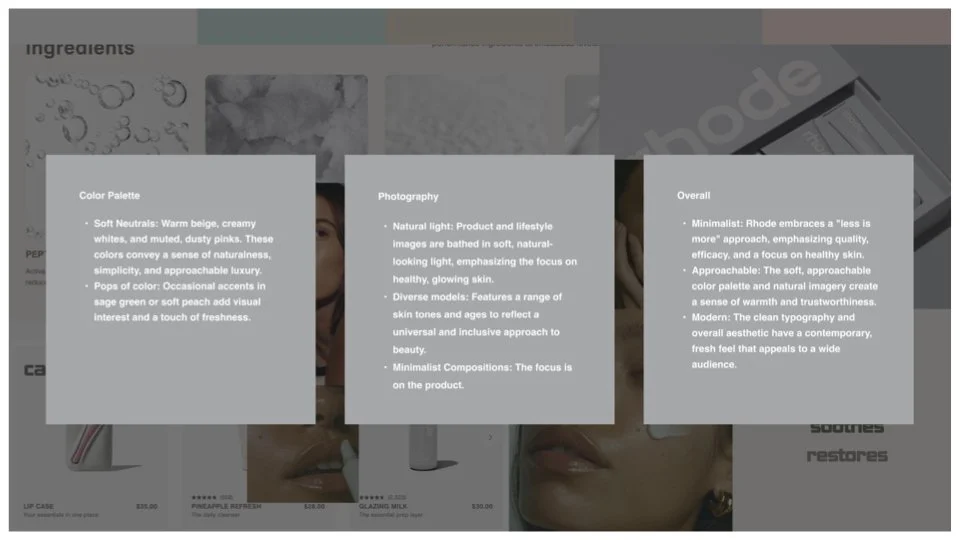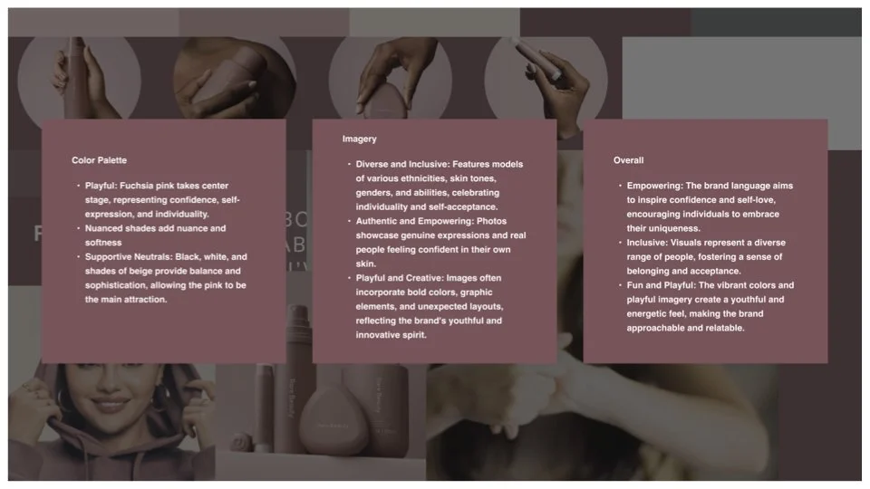 In order to make an informed recommendation to my client, I started with conducting an audit of the visual languages of top performers in the beauty and technology product markets. The brands I evaluated were identified in collaboration with the client so that we were directionally aligned before beginning the effort.