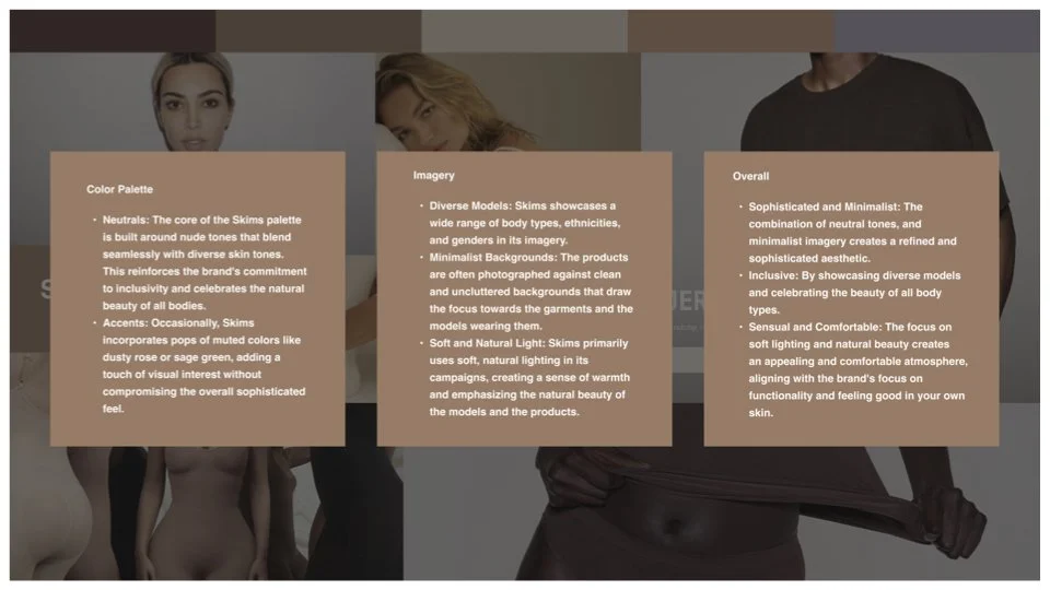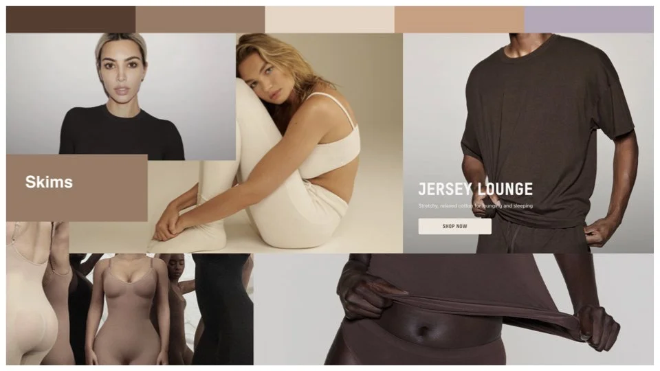 Accents: Occasionally, Skims incorporates pops of muted colors like dusty rose or sage green, adding a touch of visual interest without compromising the overall sophisticated feel.