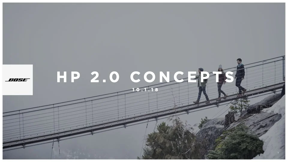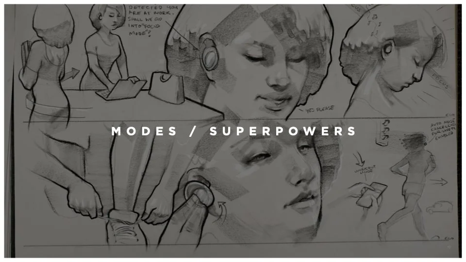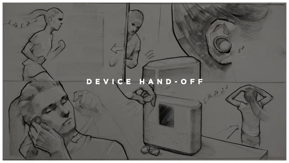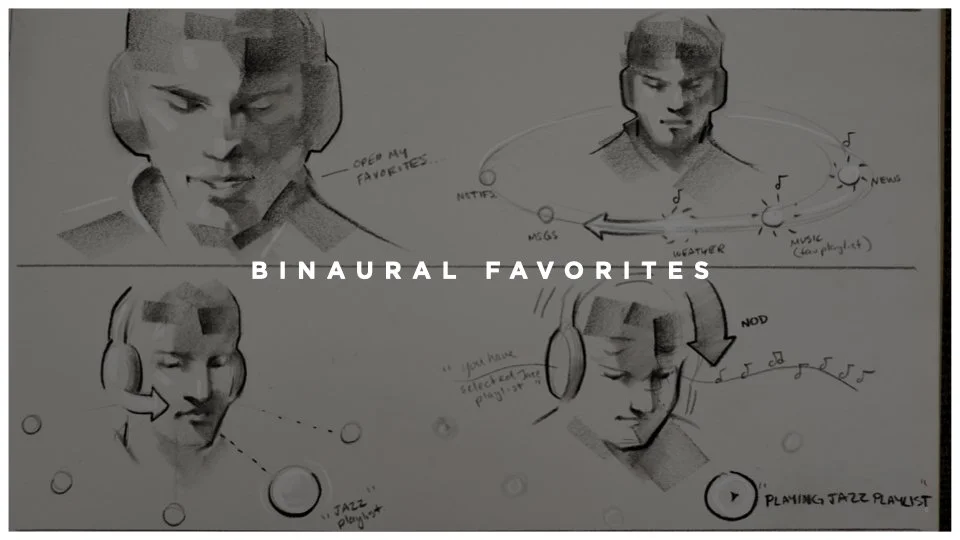 As part of the Bose Labs organization, I lead a team to create video assets that could communicate concepts we had been exploring for internal review, and external user resonance testing. For this effort we landed on a low fidelity animated storyboard with voice narration. This style aimed to make these forward-looking feel more approachable to folks encountering them for the first time.